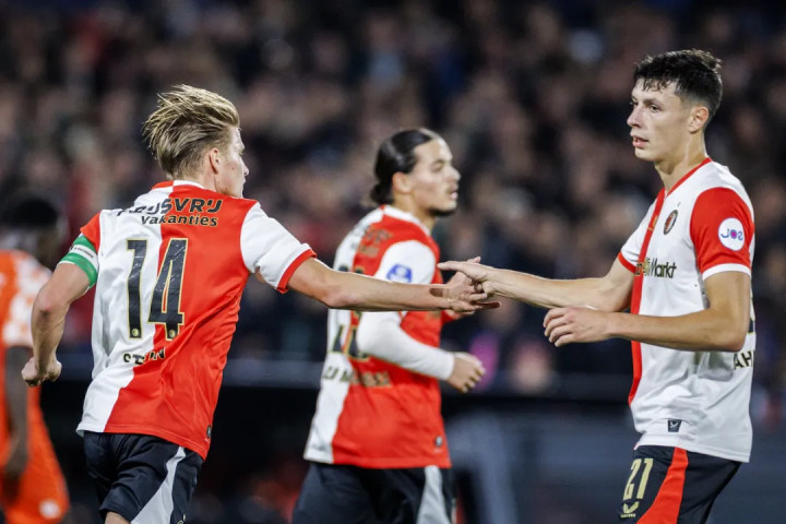 2025-26赛季荷甲联赛第11轮展开争夺融创配资,领头羊费耶诺德坐镇主场迎战升班马福伦丹。全场比赛,主场作战的费耶诺德凭借斯泰恩破门、日本球员上田绮世双响,最终费耶诺德3-1击败福伦丹。