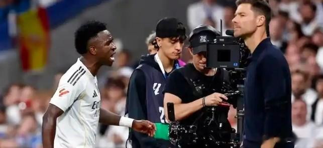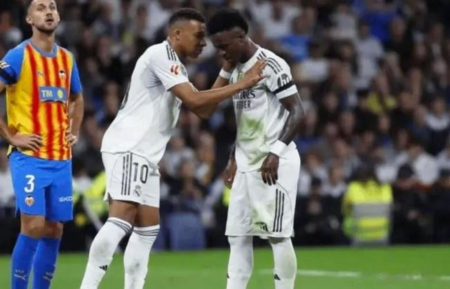 过去整整一周,维尼修斯都成了皇马新闻的头条人物,他和阿隆索的“不和”被媒体热炒。本场对瓦伦射失点球,赛后记者们自然少不了向阿隆索拱火,一名记者提问道:“姆巴佩要再次赢得金靴奖,他为什么要把点球让给维尼修斯?”阿隆索回答说:“他(姆巴佩)已经进了两个,可以让他继续竞争金靴。球队的士气很高,姆巴佩和维尼修斯的关系也很好。”